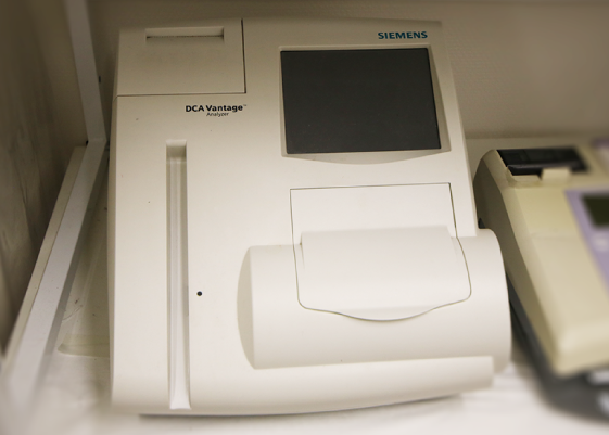 糖尿病の診断や管理において重要なHbA1c(ヘモグロビンA1c)を測定する装置です。採血からわずか5分ほどで結果が得られ、迅速な診療判断が可能です。